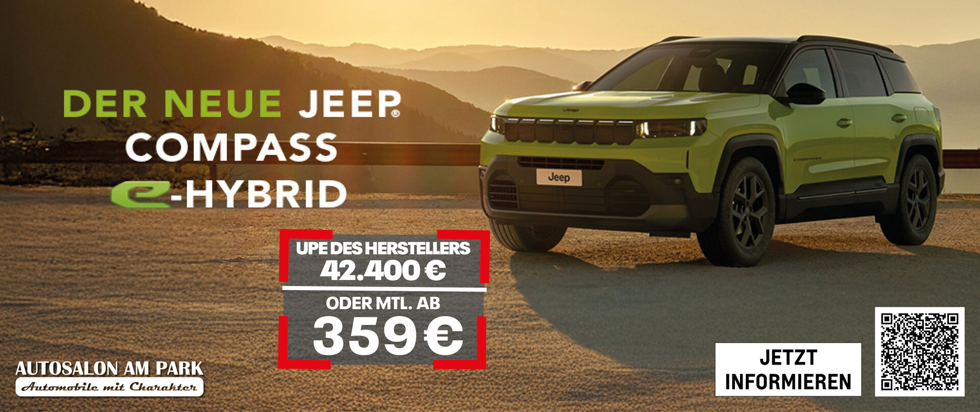 Kombinierte Werte für den Jeep® Compass Elektro gem. WLTP: